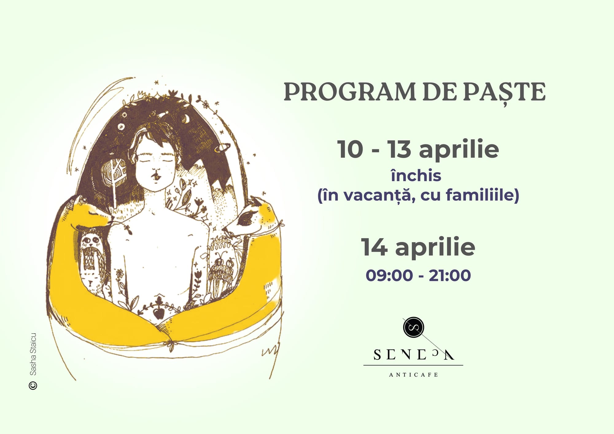 Dragi prieteni, Începând de marți 10.03.2020 până marți 17.03.2020 (inclusiv) Seneca Anticafe se închide pentru siguranța musafirilor săi. De asemenea vom reprograma toate evenimentele lunii martie. După cum știți deja, virusul COVID-19 este prezent acum și în București. Vă recomandăm: 1. Evitarea locurilor aglomerate. 2. Evitarea călătoriilor în zonele afectate. 3. Pastrarea unei distante de 2 metri în interactiunile cu cei din jur, iar pentru siguranța celor dragi optați pentru emoticoane în loc de interacțiune directă 😚 🤝 👫 🤗 Singura modalitate de a ne asigura că nu facilităm transmiterea potențială a virusului este să închidem până când situația nu mai prezintă un pericol. Vă stăm la dispoziție la contact@senecanticafe.ro și 0720.331.100 pentru urgențe. Revenim cu update pe 16.03.2020. Vă mulțumim și aveți grijă de voi. Echipa Seneca